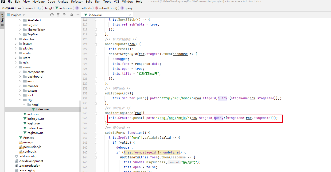 该菜单功能的vue页面位置如下